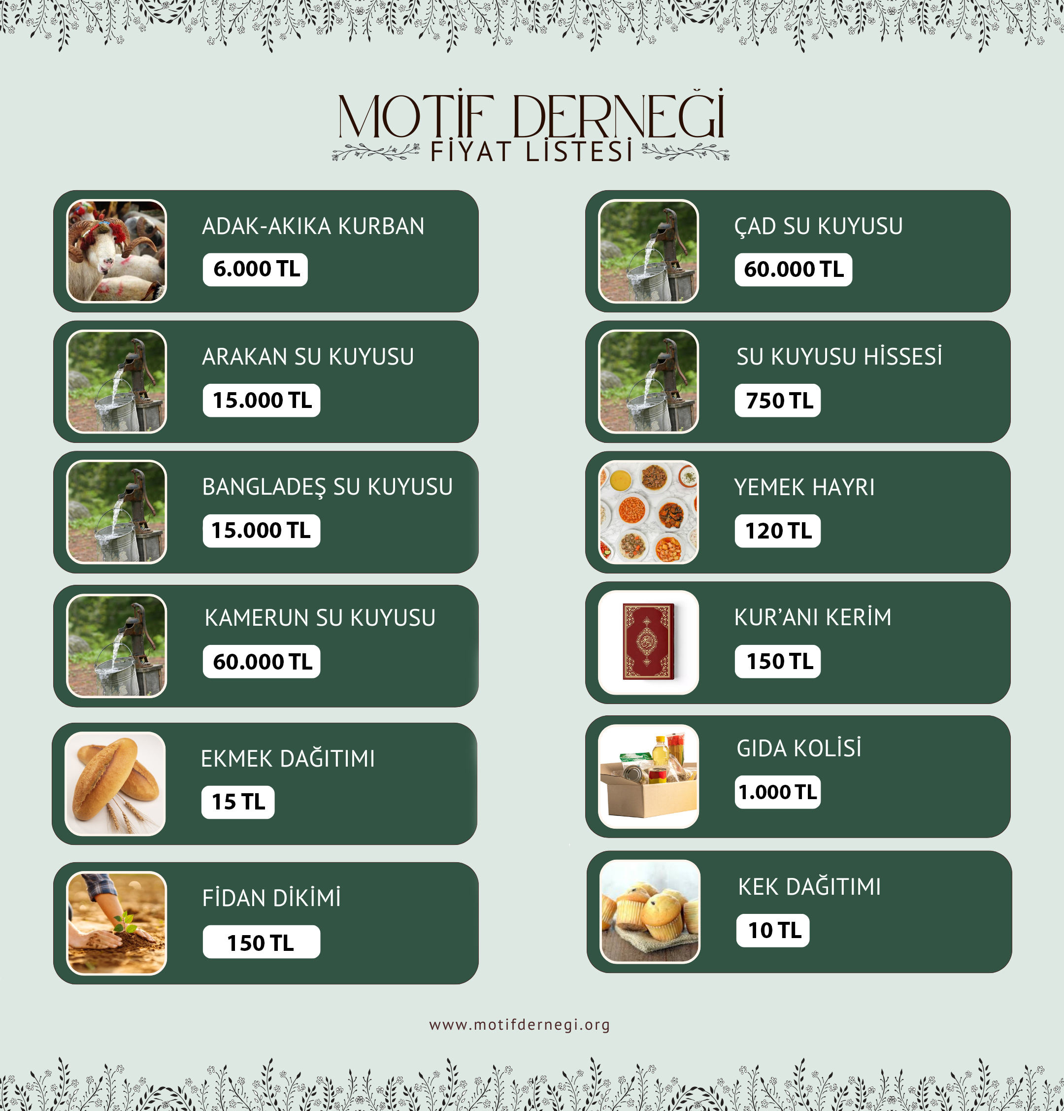 Banka Adı: Ziraat BankasıHesap Adı: MOTİF ULUSLARARASI İNSANİ YARDIM DERNEĞİIban: TR34 0001 0000 8496 2311 3150 01